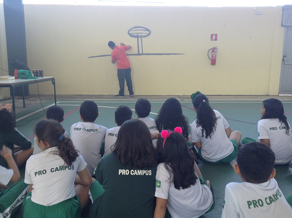 Dando continuidade as palestras realizadas na escola, os alunos do 3° ano também participaram de uma dinâmica especial na Oficina de Grafite, em que foi destacado desde o surgimento a expansão do grafite no país, a frente da palestra, um grupo de arte urbana da capital.