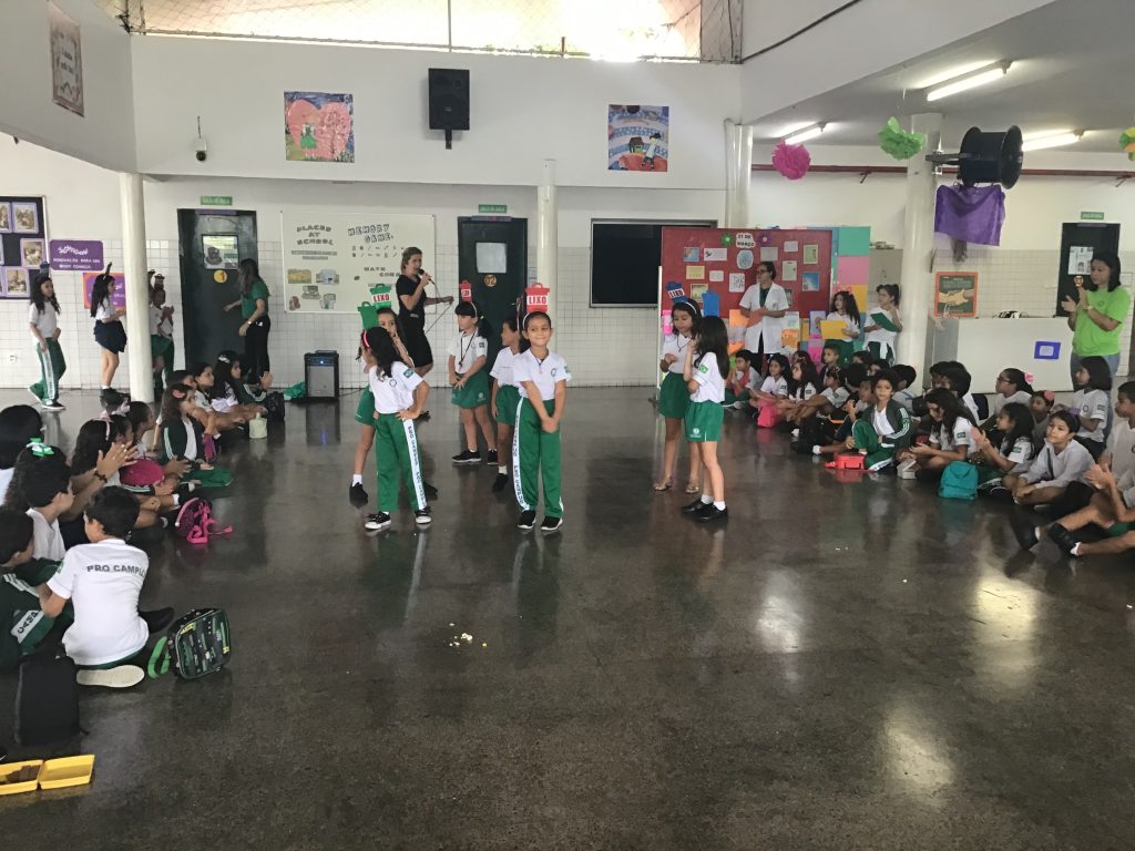 E com o objetivo de conscientizar os alunos sobre o descarte adequado do lixo, o Colégio Pro Campus Criança, na última semana, realizou mais uma etapa do projeto “Ano Novo: mundo limpo”, que consiste na realização de apresentações artísticas e ações educativas sobre os cuidados com o meio ambiente, tudo com base no projeto 2019: “Igualdade e Fraternidade: unidos pelo bem comum”.